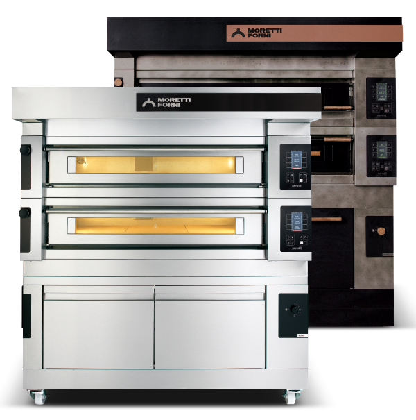Idealne urządzenie do bezpośredniego i pośredniego pieczenia pizzy, chleba i ciast, dzięki wymiennym płytom z cegły ogniotrwałej lub tłoczonej stali nierdzewnej oraz możliwości zainstalowania opcjonalnego parowaru.
